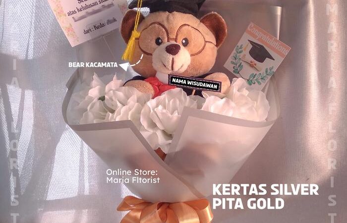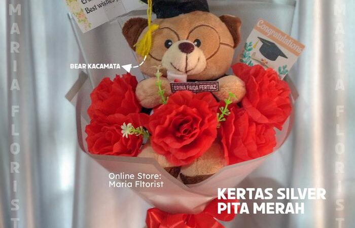 Hadiah spesial nan menggemaskan untuk merayakan pencapaian terbaik! Buket Bunga Boneka Bear Wisuda ini adalah pilihan tepat bagi yang ingin memberikan kejutan istimewa pada momen kelulusan. Desainnya unik, memadukan boneka beruang gembul yang lucu dengan rangkaian bunga artifisial berkelas, menjadikannya kenangan abadi yang tak terlupakan.