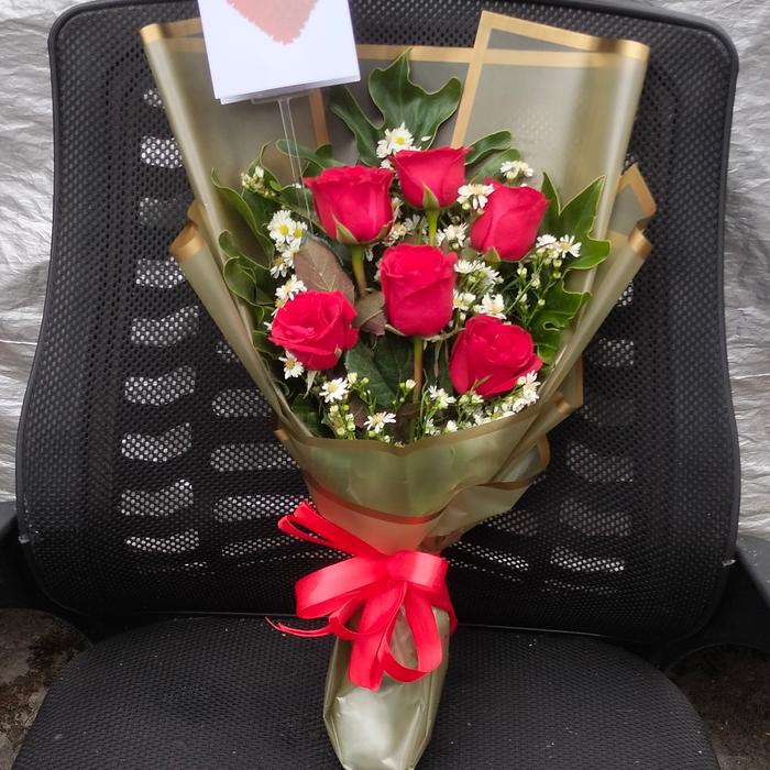 Raih momen spesial wisuda dengan keindahan yang abadi. Persembahkan buket bunga mawar segar nan elegan sebagai simbol kebanggaan dan sukacita. Setiap buket terdiri dari 5 tangkai mawar pilihan yang masih fresh, dibungkus dengan kemasan kertas berwarna gold yang mewah dan cocok untuk hadiah.