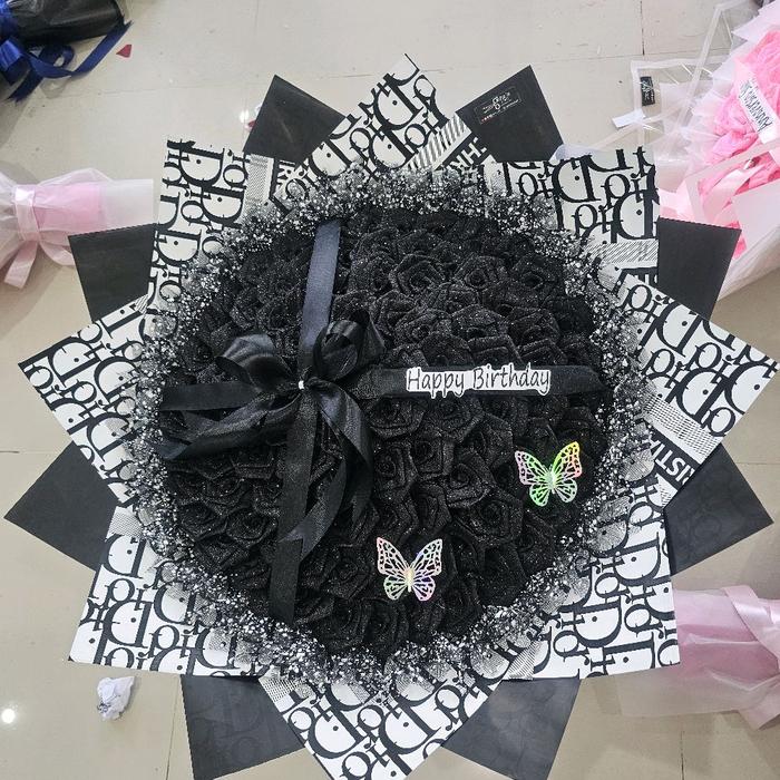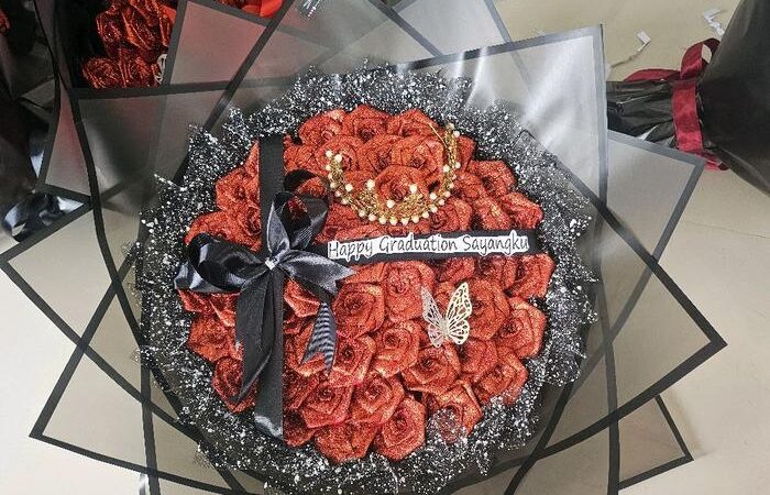 | Paket Besar | 50 bunga | Rp120.000 | Gratis tulisan, pita, kupu-kupu |