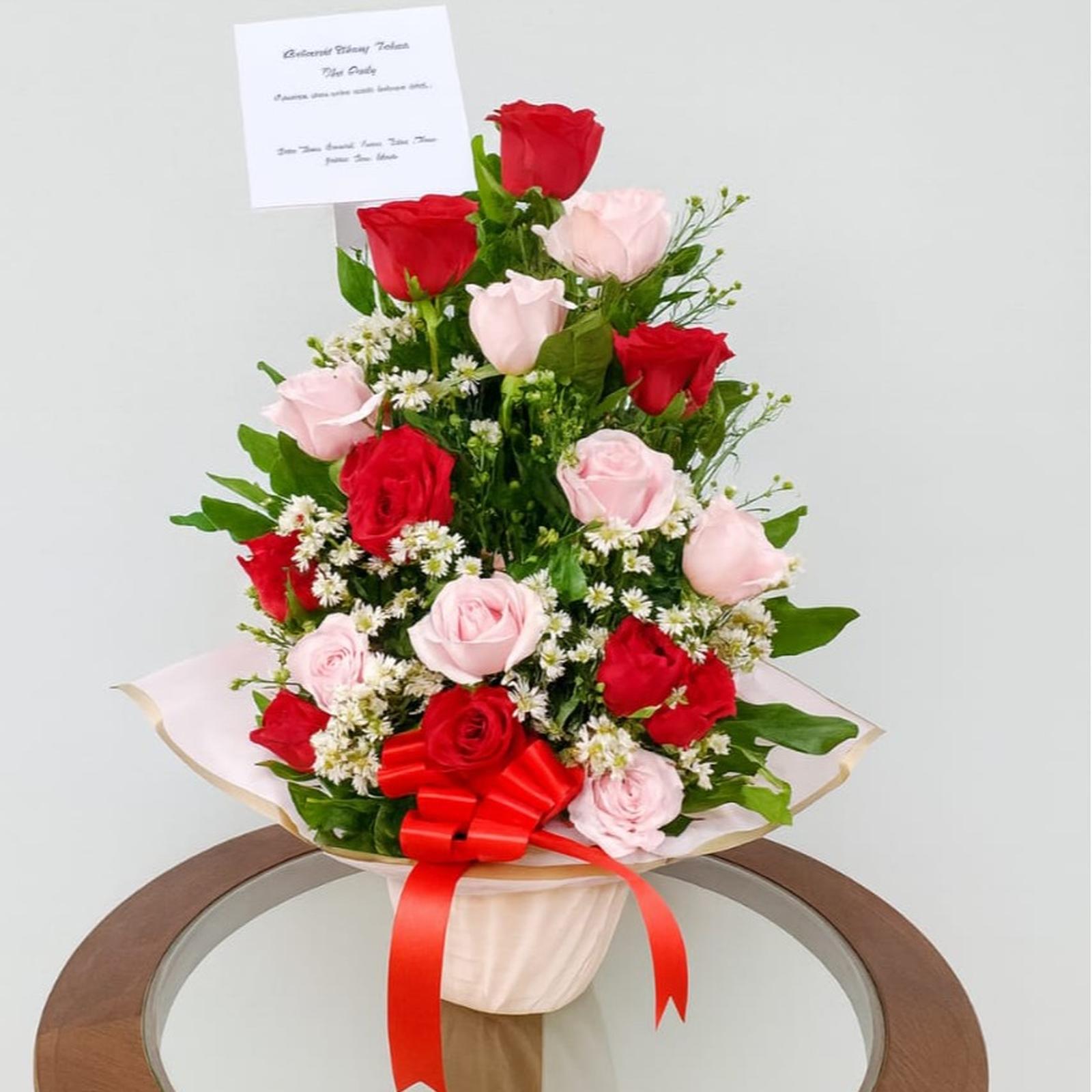 Rayakan momen kasih sayang yang abadi dengan rangkaian bunga meja eksklusif kami. Buket ini berisi 15 tangkai mawar segar pilihan, langsung dari kebun, yang dirangkai apik oleh florist profesional. Setiap kelopaknya merepresentasikan cinta dan kebahagiaan, cocok menjadi hadiah anniversary yang penuh makna dan kejutan sempurna untuk orang terkasih.