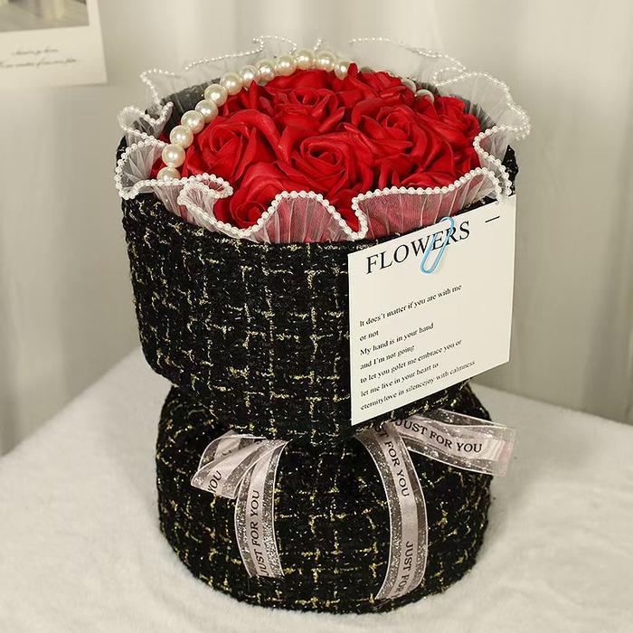 Temukan keindahan abadi yang memadukan fungsi dan seni. Buket Mawar Sabun 9 Tangkai ini adalah revolusi dekorasi yang tidak hanya memukau visually tetapi juga memiliki keunggulan fungsional. Setiap kuntum mawar sabun berdiameter 5 cm terdiri dari 4 lapisan kelopak yang detail, mengeluarkan aroma harum yang tercium saat didekatkan. Aromanya menciptakan suasana segar sekaligus bisa digunakan untuk mencuci tangan.