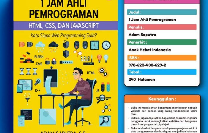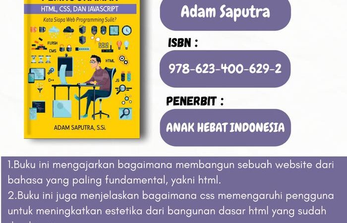 Ingin membuat website yang menarik untuk branding, start-up, atau konten Anda? Di era digital ini, website adalah wadah penting yang harus dimiliki. Buku ini dirancang khusus untuk membimbing Anda menguasai tiga pilar utama pembuatan website dengan metode yang mudah dan cepat. Mulai dari HTML untuk membangun struktur dasar, CSS untuk mendesain tampilan yang estetis dan memikat pengguna, hingga JavaScript untuk menciptakan website yang dinamis dan responsif. Semua dirangkum secara lengkap dan praktis. Buktikan sendiri, dengan panduan yang tepat, web programming tidaklah sesulit yang dibayangkan! Segera miliki bukunya dan wujudkan website impian Anda.