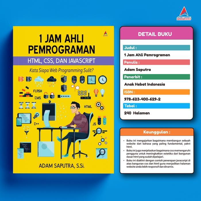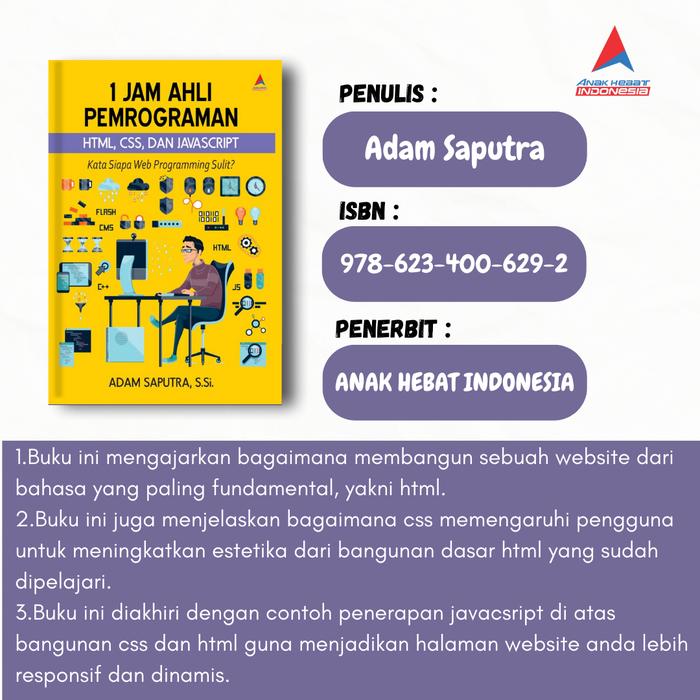Ingin membuat website yang menarik untuk branding, start-up, atau konten Anda? Di era digital ini, website adalah wadah penting yang harus dimiliki. Buku ini dirancang khusus untuk membimbing Anda menguasai tiga pilar utama pembuatan website dengan metode yang mudah dan cepat. Mulai dari HTML untuk membangun struktur dasar, CSS untuk mendesain tampilan yang estetis dan memikat pengguna, hingga JavaScript untuk menciptakan website yang dinamis dan responsif. Semua dirangkum secara lengkap dan praktis. Buktikan sendiri, dengan panduan yang tepat, web programming tidaklah sesulit yang dibayangkan! Segera miliki bukunya dan wujudkan website impian Anda.