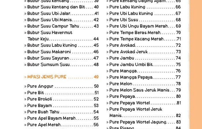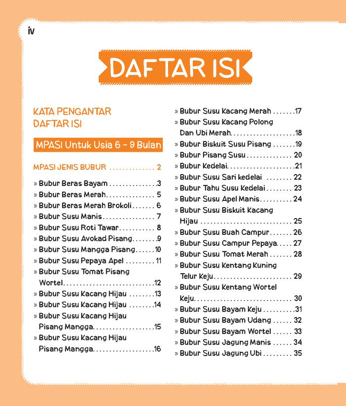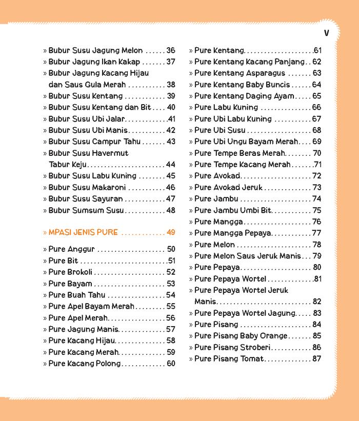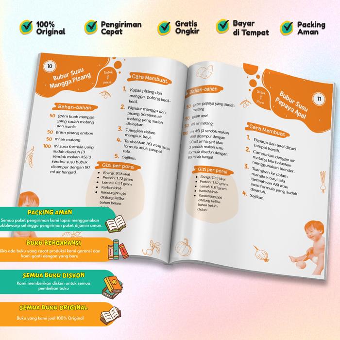 • Lebih dari 365 resep dengan variasi tekstur dari lembut hingga kasar, sesuai tahapan perkembangan bayi.