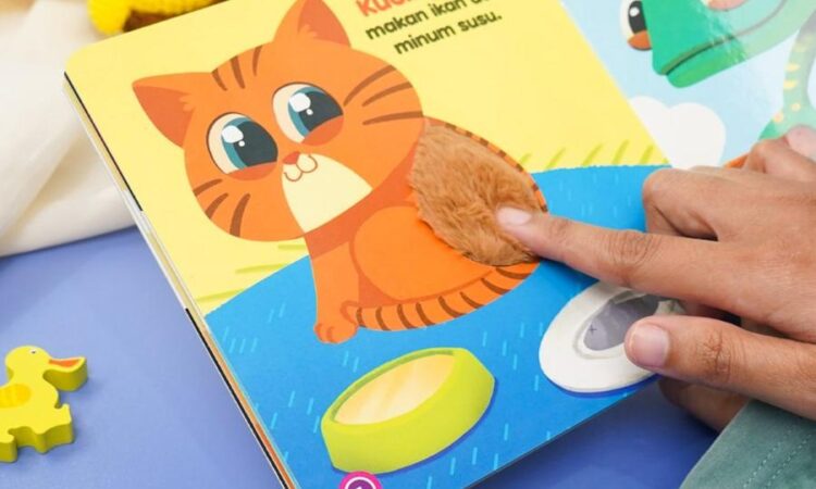 | Fitur Interaktif | Slide, pull, touch-and-feel texture, lift-the-flap, mirror, dan contrast page. |
