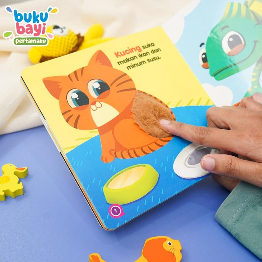 | Fitur Interaktif | Slide, pull, touch-and-feel texture, lift-the-flap, mirror, dan contrast page. |