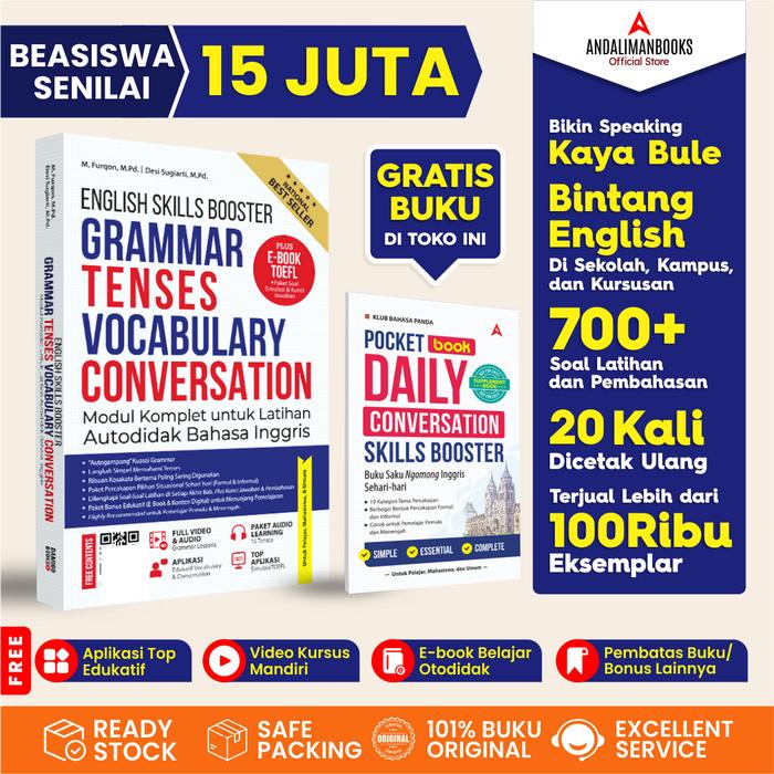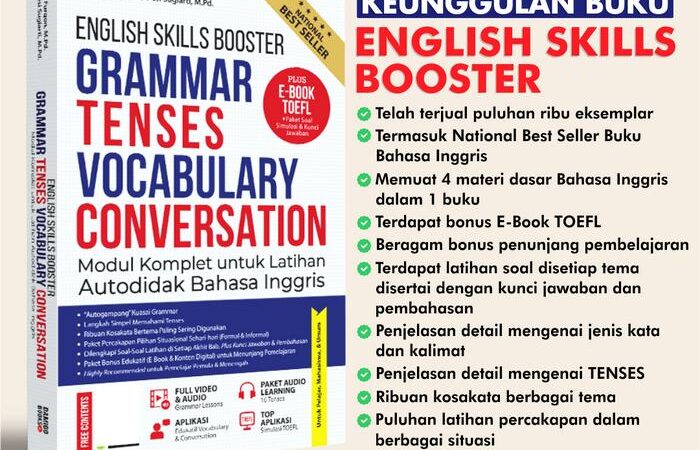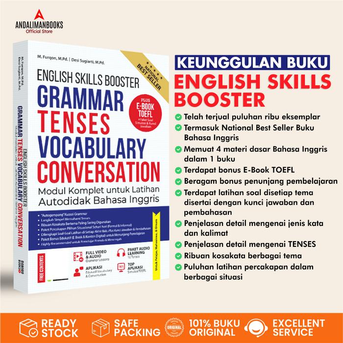Buku ENGLISH SKILLS BOOSTER adalah solusi terbaik untuk belajar mandiri tanpa les! Buku ini dirancang dengan kurikulum sistematis, mudah dipahami pemula, sekaligus mendukung pembelajaran tingkat lanjut.