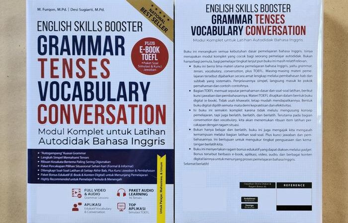 - 5 Materi Utama: Grammar, Tenses, Vocabulary, Conversation, dan TOEFL (termasuk soal latihan + pembahasan).