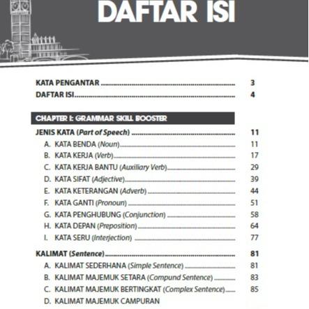 ENGLISH SKILLS BOOSTER mencakup Grammar, Conversation, Vocabulary, dan Tenses dengan penyajian materi runtut dan mudah dipahami semua kalangan. Dilengkapi latihan soal + kunci jawaban untuk menguji pemahaman.