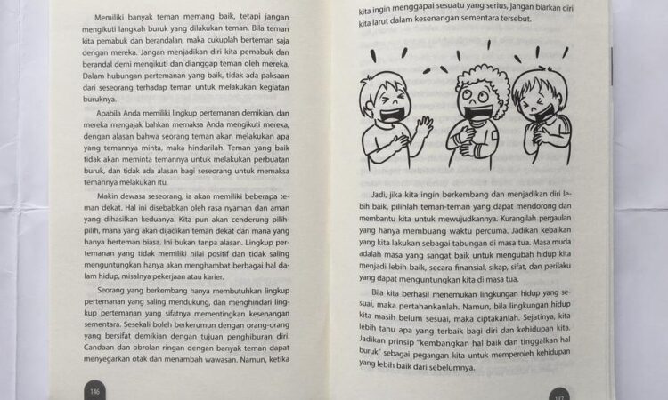 - Binding/BW: Teknik penjilidan buku dengan metode lem panas (binding) dan dicetak hitam putih (BW).