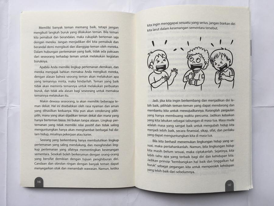 - Binding/BW: Teknik penjilidan buku dengan metode lem panas (binding) dan dicetak hitam putih (BW).