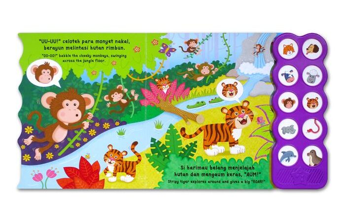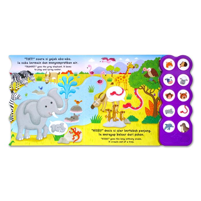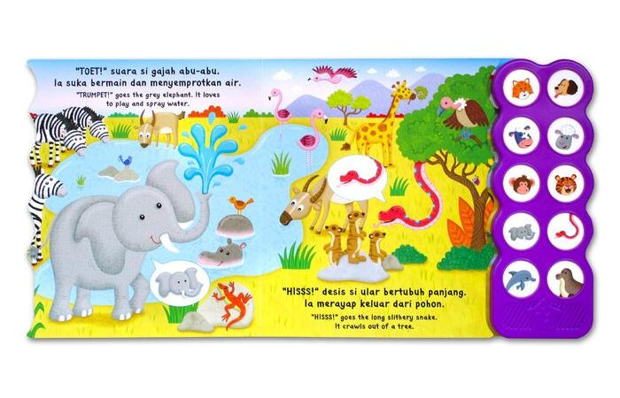 Buku interaktif ini dirancang khusus untuk anak-anak dengan fitur suara hewan yang menarik dan edukatif. Dilengkapi dengan 10 tombol suara hewan berbeda, buku ini membantu si kecil mengenal berbagai jenis hewan dalam dua bahasa (Indonesia & Inggris).