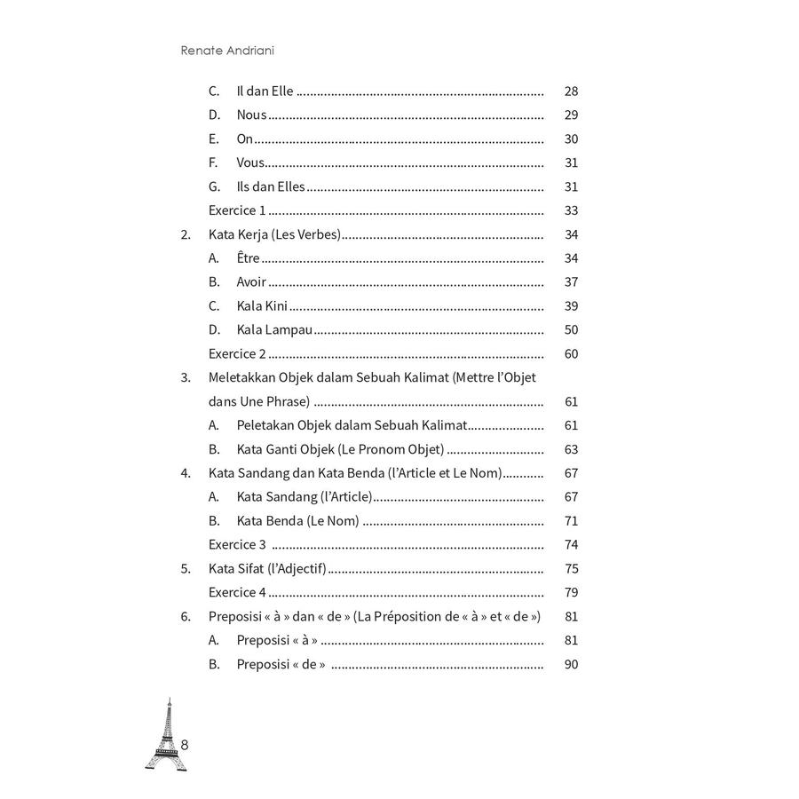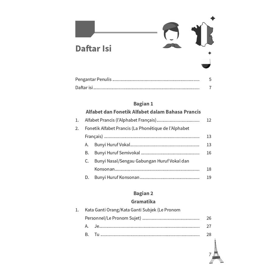 Bahasa Prancis merupakan salah satu bahasa paling populer di dunia, digunakan sebagai bahasa resmi di 29 negara, termasuk Prancis, Kanada, dan bagian Afrika. Menguasainya membuka peluang karir, studi, atau perjalanan di negara Francophone (istilah untuk wilayah berbahasa Prancis). Buku ini membantu Anda mempelajari dasar-dasar seperti: