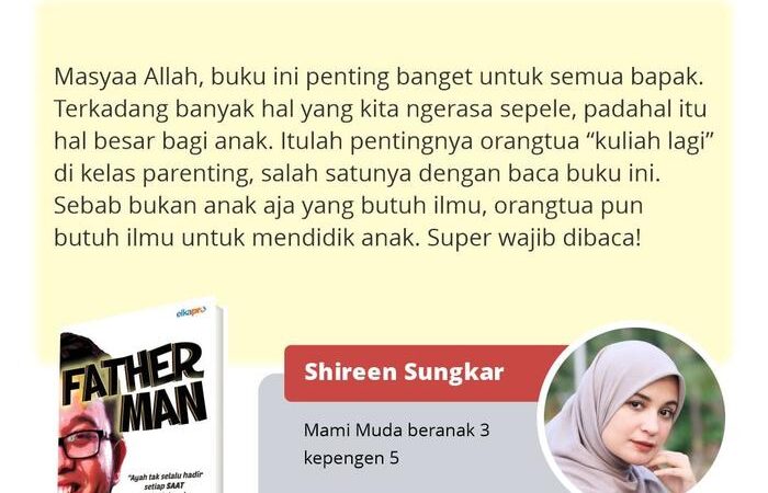 Persiapkan diri Ayah dengan belajar dari buku kami yang berjudul Fatherman 1. Sebuah panduan praktis bagi ayah muslim yang ingin menjadi teladan bagi keluarga, dengan pendekatan Islami yang mudah dipahami dan diterapkan sehari-hari.
