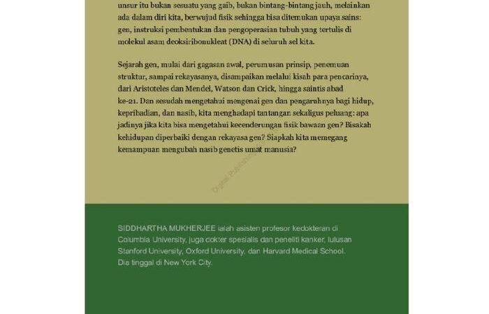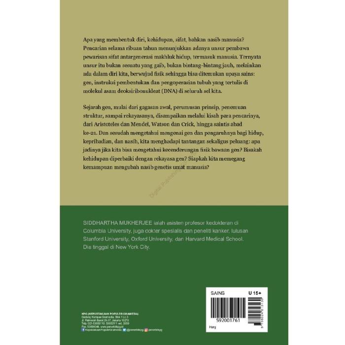 Temukan narasi epik yang membawa Anda melintasi waktu, dari gagasan awal Aristoteles, eksperimen brilian Gregor Mendel, hingga momen penemuan struktur DNA oleh Watson dan Crick. Mukherjee tidak hanya menyajikan fakta sejarah tetapi juga mendalami implikasi etis dari revolusi genetika modern—mulai dari pengeditan gen CRISPR hingga kemampuan kita memprediksi penyakit dan mengubah masa depan spesies manusia.