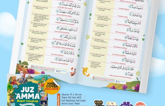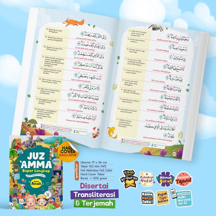 Dukung proses menghafal Juz Amma si kecil dengan metode yang lengkap dan menyenangkan. Buku ini tidak hanya membantu anak menghafal surat-surat pendek, tetapi juga memahami makna, hukum baca (tajwid), serta konteks turunnya ayat (asbabun nuzul). Dilengkapi dengan fitur-fitur istimewa untuk memudahkan belajar dan menjaga semangat anak.