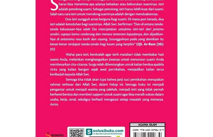 Perankan peran strategismu sebagai manajer keluarga dengan kekuatan doa. Buku ini adalah panduan praktis bagi istri untuk mendukung dan melindungi suami melalui ikhtiar spiritual. Berisi kumpulan doa pilihan dari Al-Qur’an dan Hadist yang disusun khusus untuk memohon kesuksesan, perlindungan, dan keberkahan dalam setiap langkah suami, baik dalam urusan duniawi maupun ukhrawi.