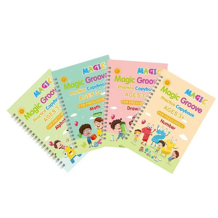 Set lengkap ini terdiri dari 4 buku dengan tema berbeda: Alphabet, Math, Drawing, dan Number. Setiap buku didesain secara colorful dengan ilustrasi yang menarik agar anak tidak mudah bosan. Dilengkapi juga dengan silicone finger guard untuk melatih cara memegang pensil yang benar sejak dini.
