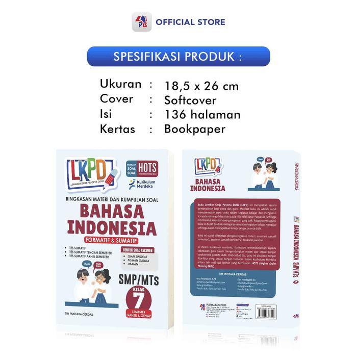 Tingkatkan pemahaman belajar siswa dengan buku Lembar Kerja Peserta Didik (LKPD) kami yang komprehensif. Dirancang khusus untuk siswa SMP Kelas 7 yang menggunakan Kurikulum Merdeka, buku ini menjadi pendamping belajar yang ideal untuk persiapan ulangan harian hingga ujian semester.