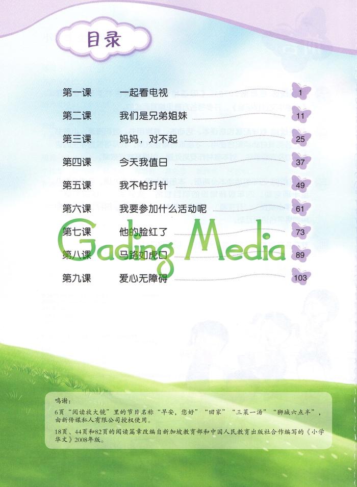 - Huan Le Huo Ban (欢乐伙伴): Seri buku pelajaran bahasa Mandarin sebagai bahasa kedua yang sangat terkenal, khususnya di Singapura. Diterjemahkan sebagai “Teman Bahagia”, seri ini dirancang untuk membuat siswa senang belajar bahasa Mandarin melalui cerita, lagu, dan aktivitas yang menarik.