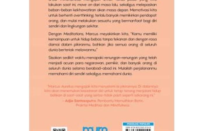 “Marcus Aurelius mengajak kita menyelami isi pikirannya. Di dalamnya kita akan menemukan kesadaran diri untuk tetap tenang menjalani hidup bahkan di saat-saat yang serba tidak pasti seperti sekarang ini.” — Adjie Santosoputro, Praktisi Meditasi dan Mindfulness