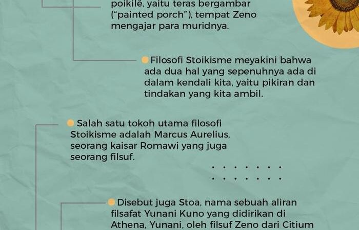 • Stoik/Stoisisme: Aliran filsafat yang mengajarkan untuk mengendalikan hal-hal yang dapat dikendalikan dan menerima hal-hal yang tidak dapat dikendalikan dengan tenang. Fokus pada kebajikan, ketenangan batin, dan kebijaksanaan.