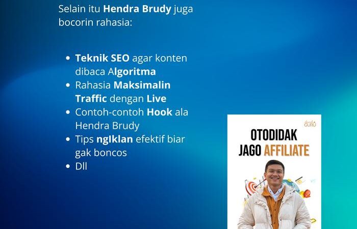 Jangan biarkan waktu dan lokasi membatasi potensi penghasilan Anda. Dunia affiliate marketing menawarkan peluang pendapatan pasif yang luar biasa, dan kini Anda bisa mempelajarinya secara mandiri. Buku “Otodidak Jago Affiliate” oleh Hendra Brudy adalah panduan komprehensif yang dirancang untuk pemula. Mulai dari memahami dasar-dasar, memilih program affiliate yang menguntungkan, hingga strategi mempromosikan produk tanpa perlu memiliki produk sendiri.