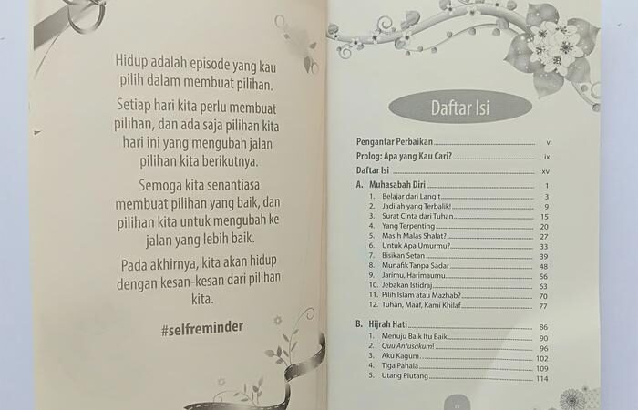 Tersedia juga banyak bab lain yang tak kalah menarik. Dilengkapi dengan 296 halaman berisi konten motivasi Islami yang mendalam. Segera miliki dan jadikan sebagai teman refleksi harian Anda.