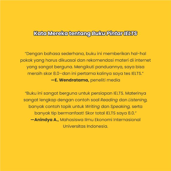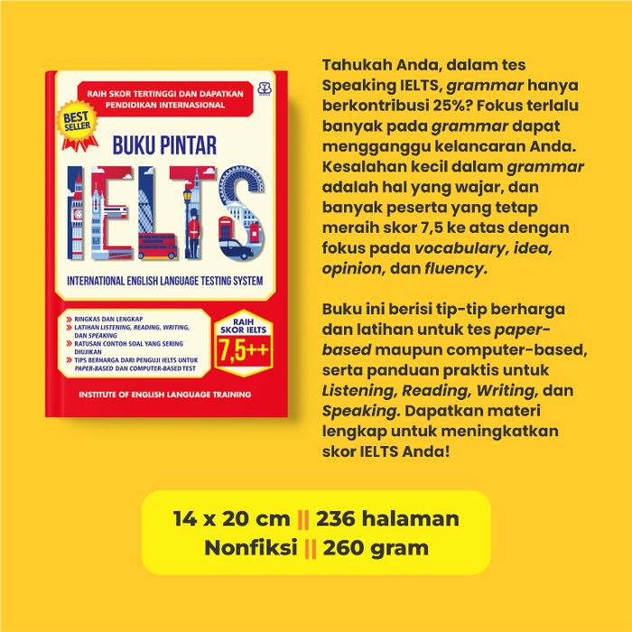 Keunggulan buku ini terletak pada kumpulan tips ringan dan aplikatif langsung dari penguji IELTS, baik untuk ujian berbasis kertas (paper-based) maupun komputer (computer-based). Anda akan menemukan latihan soal yang sangat lengkap dan berfokus pada tipe-tipe soal yang paling sering diujikan. Buku ini dirancang sebagai panduan komprehensif untuk membantu Anda mencapai skor total IELTS di atas 7.5.