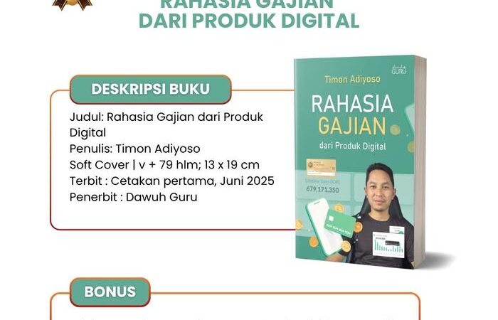 Buku ini adalah peta jalan Anda menuju kebebasan finansial di era digital. Berisi strategi-strategi teruji untuk menciptakan dan menjual produk digital seperti e-book, kursus online, template, dan aset digital lainnya. Pelajari langkah demi langkah mulai dari menemukan ide yang laris, proses produksi, strategi pricing, hingga teknik marketing yang efektif untuk menjangkau audiens tepat. Konsepnya dirancang agar dapat dijalankan bahkan bagi Anda yang masih pemula, dengan modal minimal namun berpotensi memberikan return yang maksimal. Segera wujudkan impian Anda untuk memiliki aliran penghasilan yang tidak terbatas oleh waktu dan lokasi.