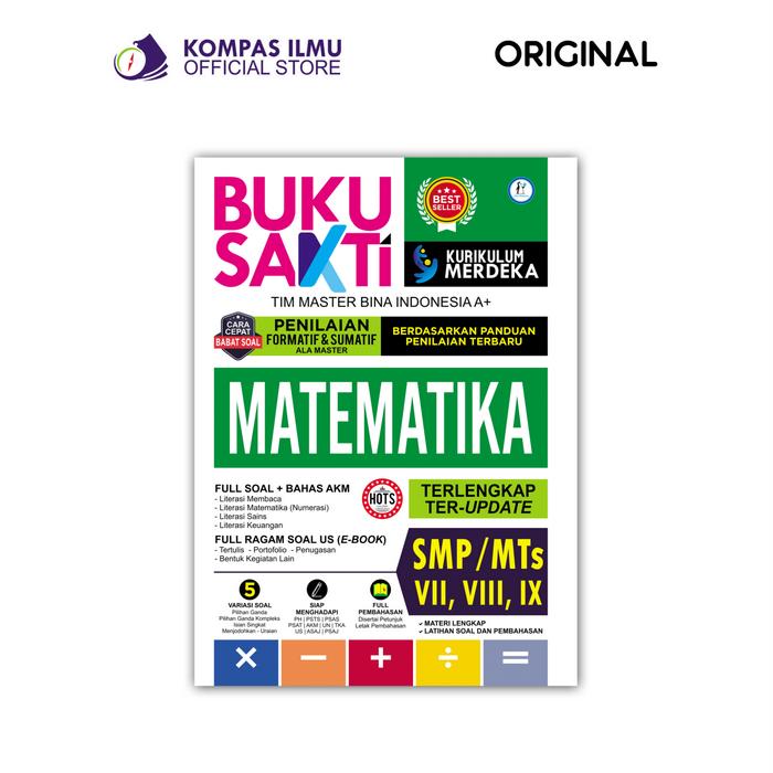 Buku ini adalah senjata pamungkas untuk menguasai Matematika SMP! Dirancang khusus untuk siswa kelas 7, 8, dan 9 agar siap menghadapi segala bentuk evaluasi belajar dengan percaya diri.