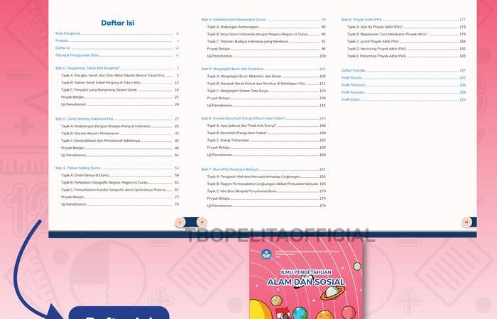 Paket lengkap kami mencakup enam mata pelajaran inti yang diperlukan untuk pembelajaran di tingkat ini. Setiap buku disusun oleh para ahli dengan konten yang telah disesuaikan dengan Capaian Pembelajaran (CP) terbaru. Materi disajikan dengan bahasa yang mudah dipahami, dilengkapi ilustrasi penuh warna, kegiatan interaktif, latihan soal, dan proyek kolaboratif yang merangsang kreativitas serta daya kritis anak.