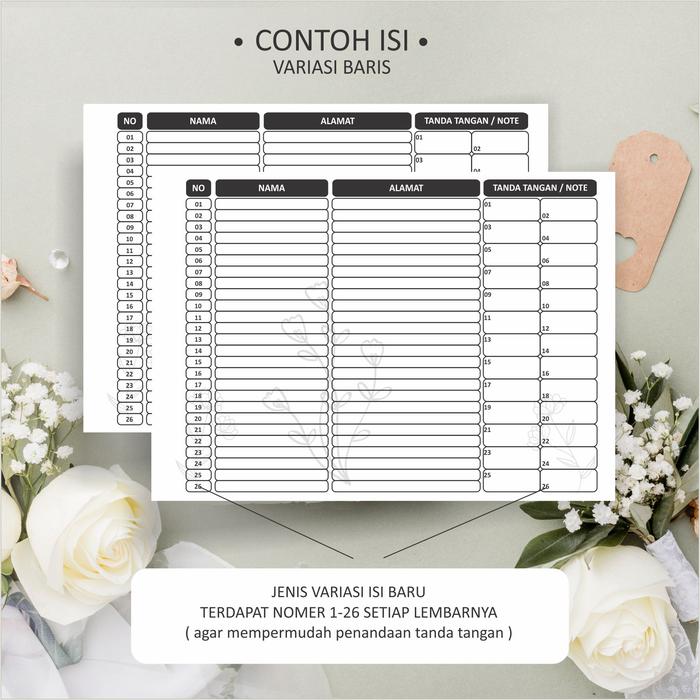 | Kapasitas | Setiap lembar memiliki 26 baris dengan nomor urut (01-26) untuk kerapian. |