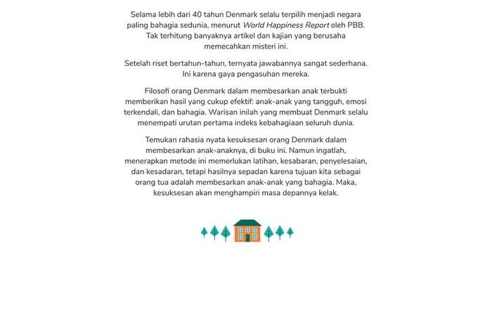 Denmark konsisten dinobatkan sebagai negara paling bahagia sedunia oleh World Happiness Report PBB selama lebih dari 40 tahun. Rahasia di balik kebahagiaan ini ternyata berasal dari pola pengasuhan anak ala Denmark. Buku The Danish Way of Parenting mengungkap filosofi pengasuhan yang melahirkan generasi tangguh, stabil secara emosional, dan penuh kebahagiaan.
