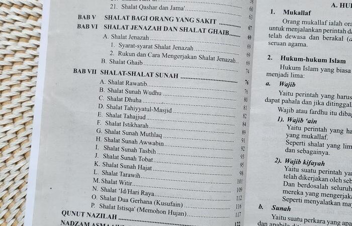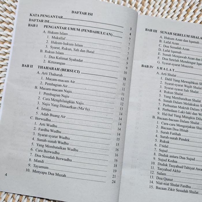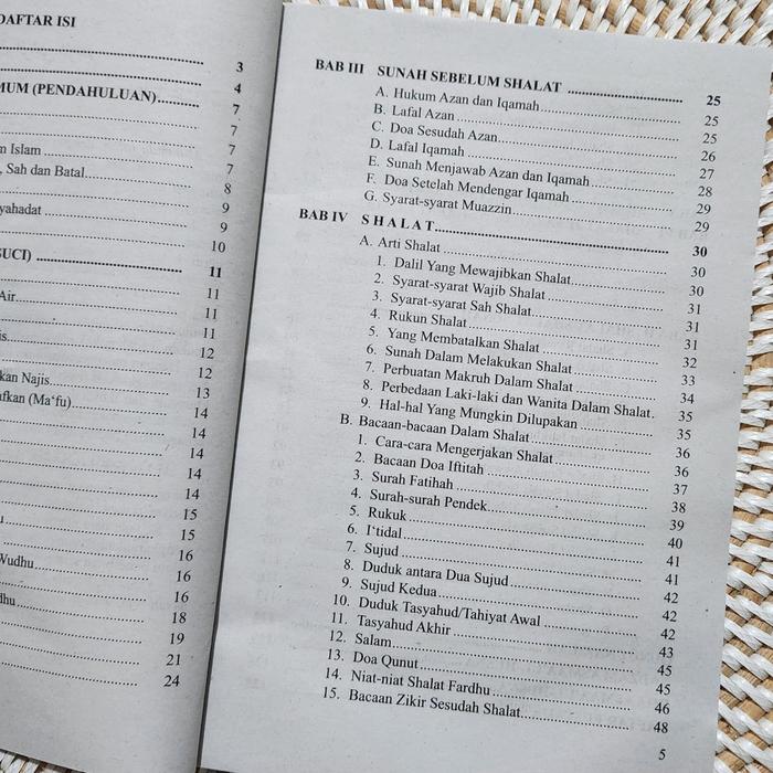 Buku ini adalah panduan komprehensif untuk mempelajari segala hal tentang shalat. Pembahasan dimulai dari fundamental Thaharah (bersuci), mencakup jenis-jenis air, macam-macam najis, dan tata cara berwudhu yang dijelaskan dengan ilustrasi gambar yang jelas.