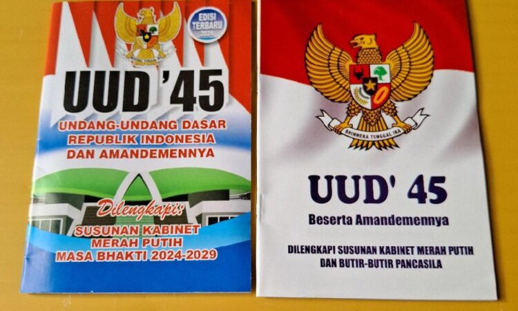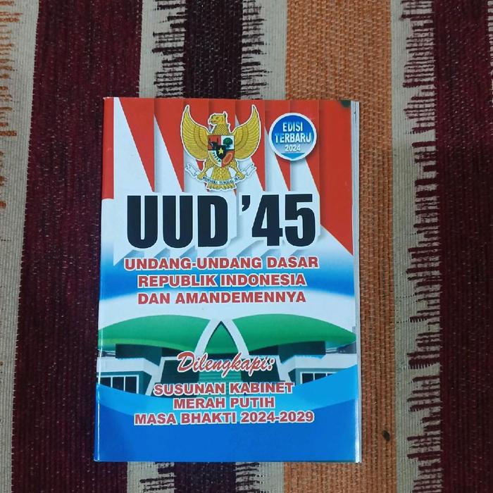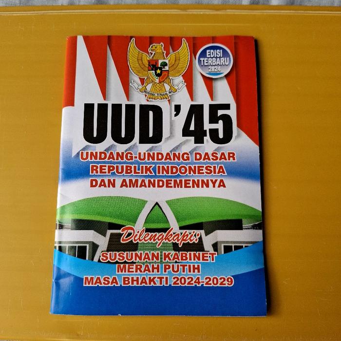 Dapatkan segera Buku UUD 1945 yang telah diperbarui dengan susunan kabinet pemerintahan terbaru. Buku ini merupakan referensi wajib bagi pelajar, mahasiswa, praktisi hukum, dan seluruh masyarakat yang ingin memahami dasar hukum dan konstitusi Negara Kesatuan Republik Indonesia. Edisi terkini ini telah memuat seluruh struktur lengkap pemerintah, mulai dari Presiden, Wakil Presiden, hingga para Menteri.