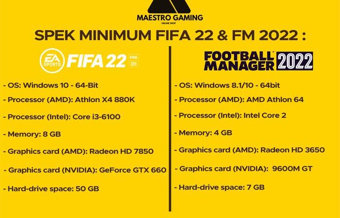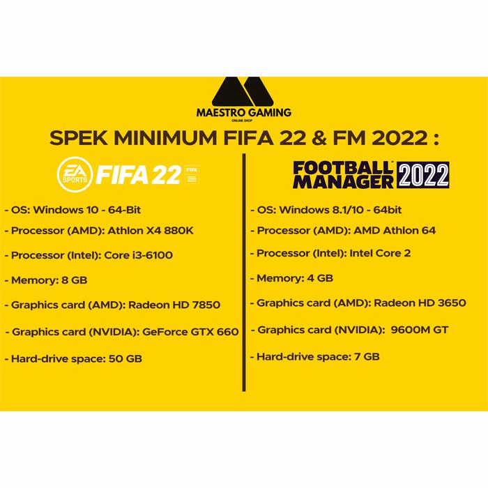 | Komponen | FIFA 22 (Minimum) | Football Manager 2022 (Minimum) |