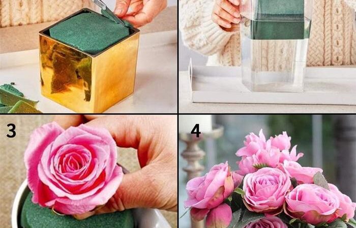 - Floral Foam: Busa khusus untuk merangkai bunga, berfungsi menahan batang bunga agar tetap stabil.