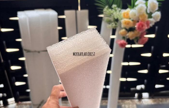 - Busa Elastis (Floral Foam): Adalah bahan dasar berongga yang dirancang khusus untuk merangkai bunga. Material ini memiliki kemampuan menyerap air dan memberikan pegangan yang kuat untuk tangkai bunga, sehingga bunga dapat tetap segar dan teratur posisinya. Sangat berbeda dengan styrofoam biasa yang lebih keras dan mudah patah.