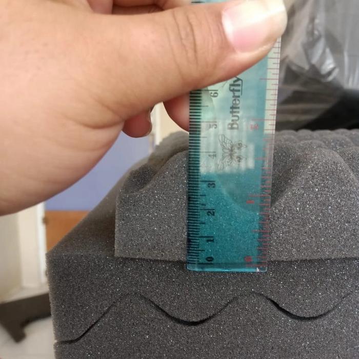 Busa peredam suara dengan motif telur (egg crate) ini dirancang untuk mengoptimalkan akustik ruangan dengan menyerap gelombang suara secara efisien. Desain permukaan bergelombang memecah frekuensi suara, mengurangi noise berlebihan, dan meminimalkan gema. Cocok untuk aplikasi profesional seperti studio rekaman, podcast, home theater, hingga ruang kerja yang membutuhkan kedap suara.