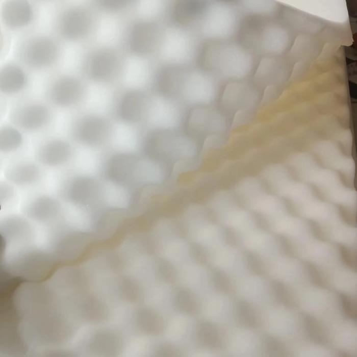 - Egg Crate: Pola permukaan bergelombang menyerupai cangkang telur, berfungsi memecah gelombang suara untuk mengurangi pantulan.