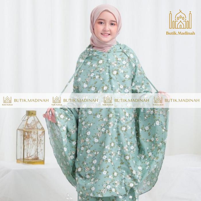 Mukena travel anak yang praktis dan stylish untuk menemani ibadah si kecil. Desain 2 in 1-nya menggabungkan atasan dan bawahan dalam satu set, dilengkapi dengan tas cantik yang memudahkan mereka untuk membawanya ke mana saja.