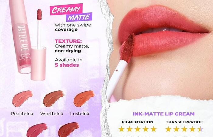 Ink-Matte Lip CreamKetahanan hingga 12 jam, hasil matte sempurna tanpa membuat bibir kering. Pigmen tinggi dengan one-swipe coverage untuk warna intens instan.Peach-Ink, Wonder-Ink, Lush-Ink, Worth-Ink, Joy-Ink