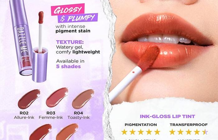 Ink-Gloss Lip TintFormulasi watery ink gel terbaru yang sangat ringan dan nyaman di bibir. Memberikan kilau maksimal dan efek plumpy yang jernih seperti kristal.Allure-Ink, Femme-Ink, Toasty-Ink, Fresh-Ink, Amber-Ink