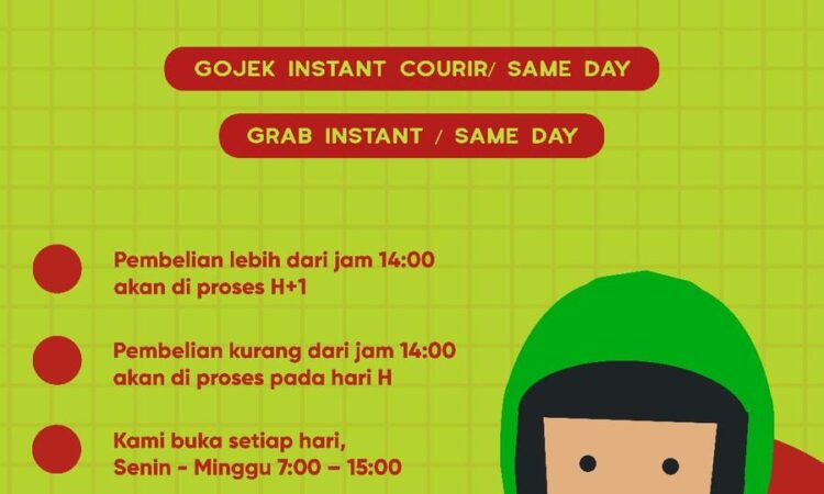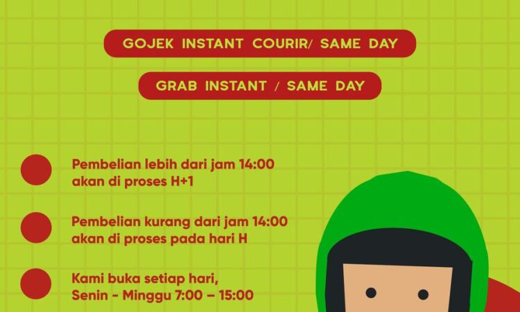 - Layanan Cepat: Pengiriman via Gojek/Grab Instant (same day) untuk pesan sebelum jam 14:00.