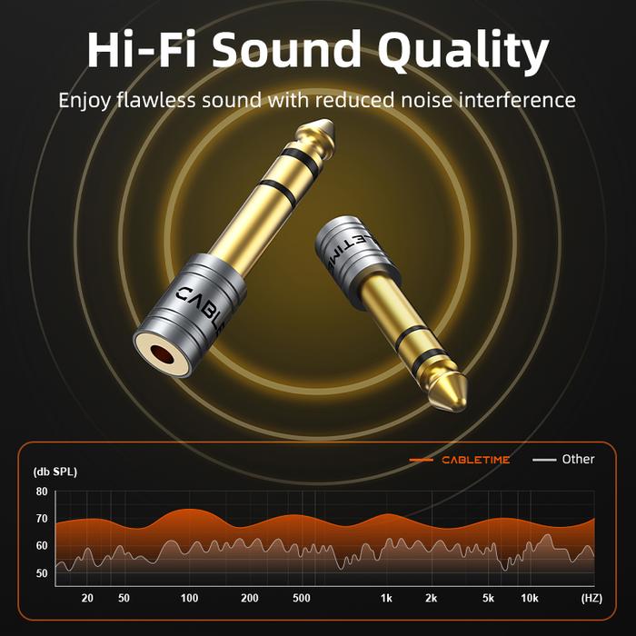 Tingkatkan pengalaman audio Anda dengan Cabletime Converter Aux Audio 3.5mm Female to 6.5mm Jack! Alat ini dirancang untuk menghubungkan perangkat audio dengan jack 3.5mm ke perangkat berjack 6.5mm tanpa mengurangi kualitas suara.