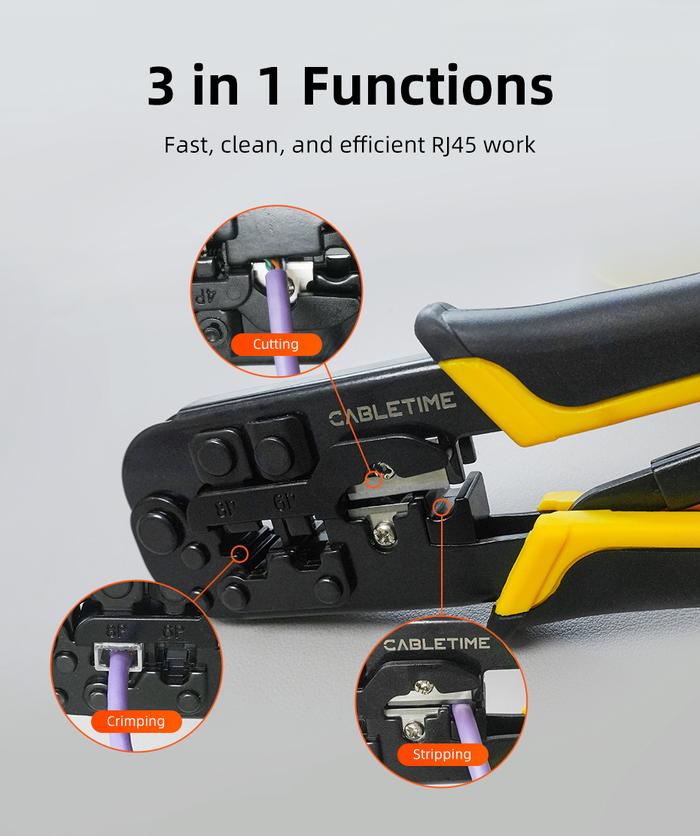 Solusi lengkap untuk semua kebutuhan crimping, cutting, dan stripping kabel jaringan Anda. Dirancang khusus untuk teknisi profesional dan pengguna rumahan yang mengutamakan efisiensi dan hasil kerja yang rapi.