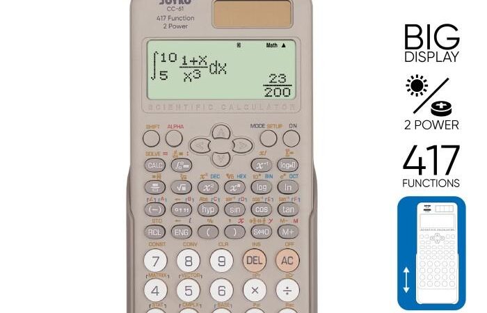- Dual Power: Sistem daya ganda yang memungkinkan kalkulator beroperasi menggunakan cahaya (solar cell) dan cadangan baterai, sehingga lebih hemat dan andal.