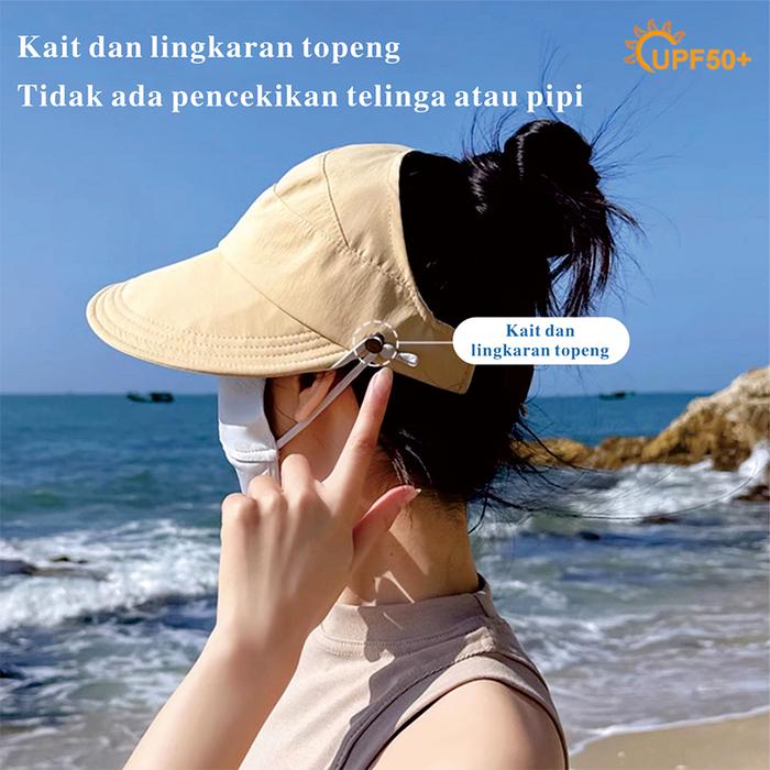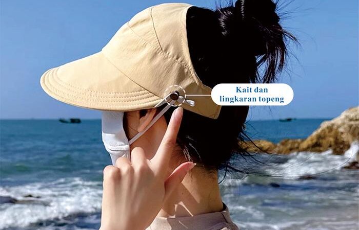 - Tirai: Bagian tepi topi yang menjorok keluar untuk melindungi dari sinar matahari. Pada produk ini, tirai berukuran besar (8 cm) untuk cakupan perlindungan yang lebih luas.