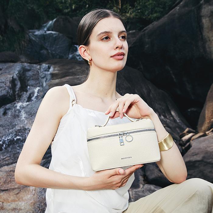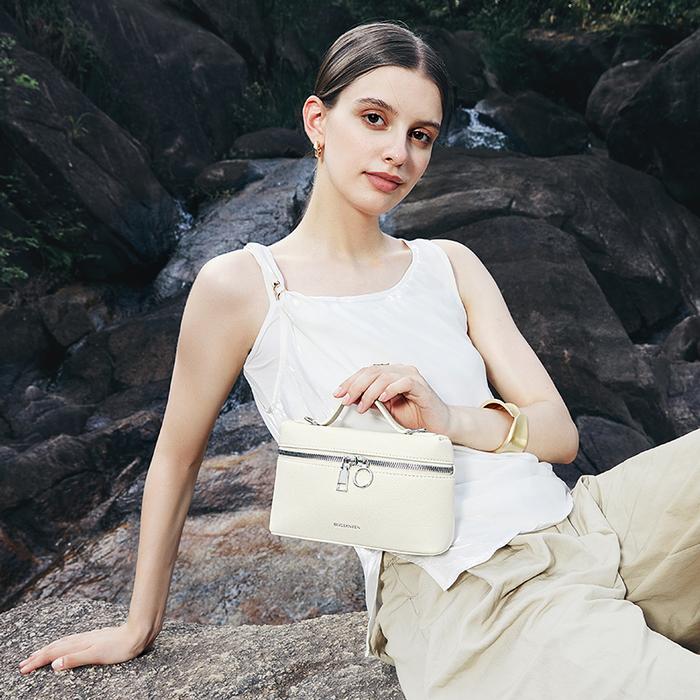 Tas ini hadir dalam tiga pilihan warna klasik yang mudah dipadukan dengan berbagai outfit: Hitam yang sophisticated, Off-Putih yang bersih, dan Warna Kamel (Camel) yang hangat. Dengan dimensi yang compact, yaitu 20cm x 13cm x 6.5cm dan bobot yang ringan hanya 0.22kg, tas ini nyaman dibawa sepanjang hari tanpa memberatkan penampilan.